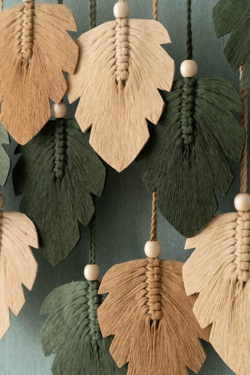 This Boho Leaf Wall Decor is handcrafted/ hand woven.