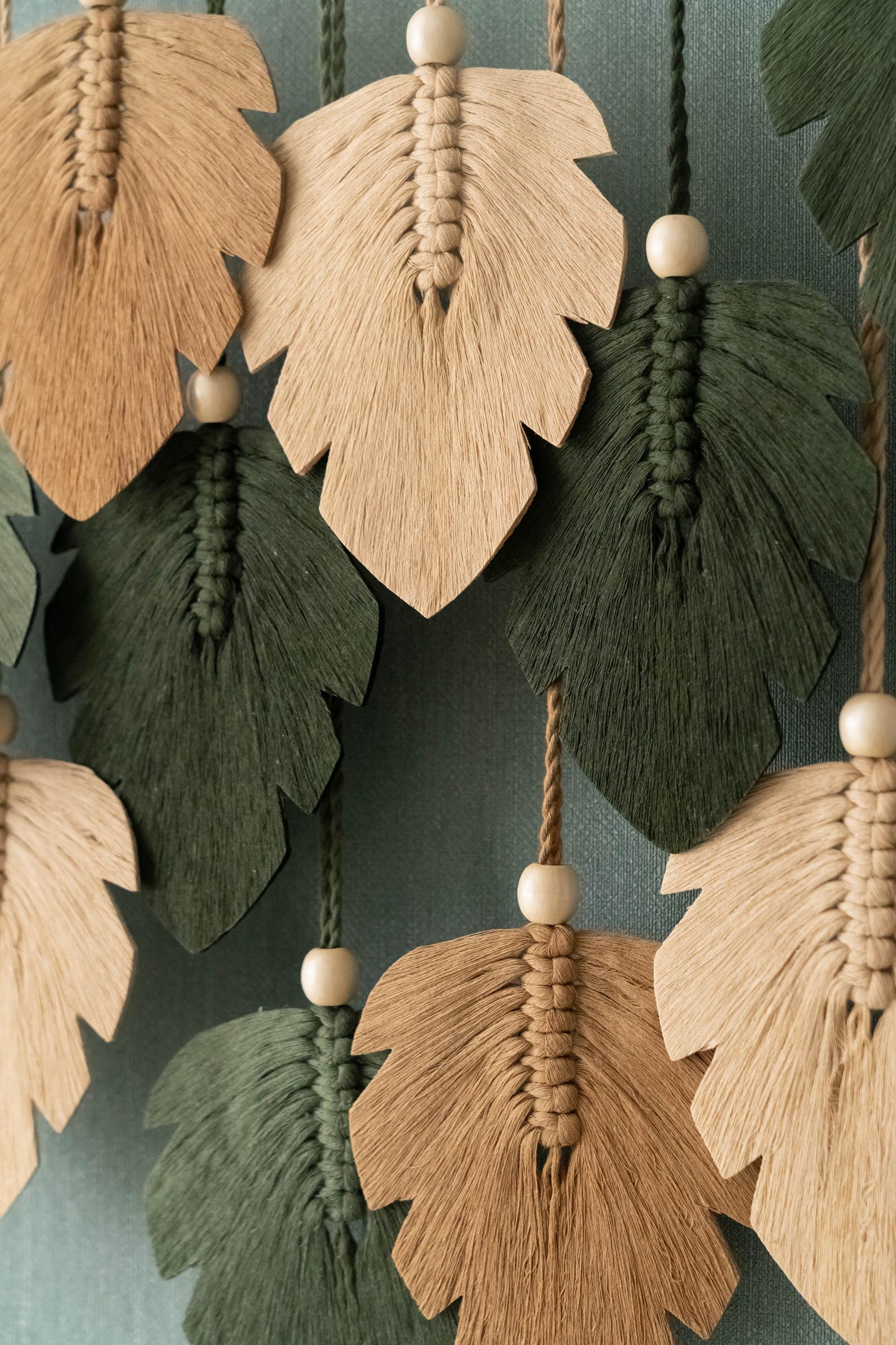 Elevate your space with our Boho Leaf Wall Decor, a stunning Macrame Wall Hanging perfect for any modern home. This handmade Macrame Tapestry adds a touch of Tropical Art and Scandinavian Decor, blending seamlessly with both Farmhouse Decor and Mid Century Modern styles. A thoughtful Gift For New Home.