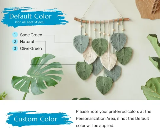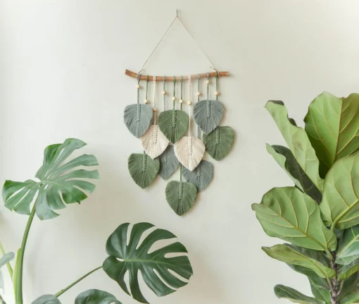 This Green Leaves Macrame Wall Hanging is handcrafted/ hand woven with Natural Friendly Cotton Cord.